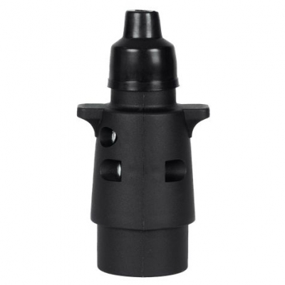 7-контактный разъем для прицепа. Этот аксессуар представляет собой универсальную вилку, подходящую к любому типу прицепа или эвакуатора. Корпус изготовлен из очень прочного ПВХ-материала, что делает его устойчивым к повреждениям. Он имеет вилку на 12 В и металлические контакты, защищенные от ржавчины. Он очень прост в установке и обеспечивает постоянную связь между электросистемой прицепа и автомобиля, гарантируя бесперебойную работу всех фар во время движения.